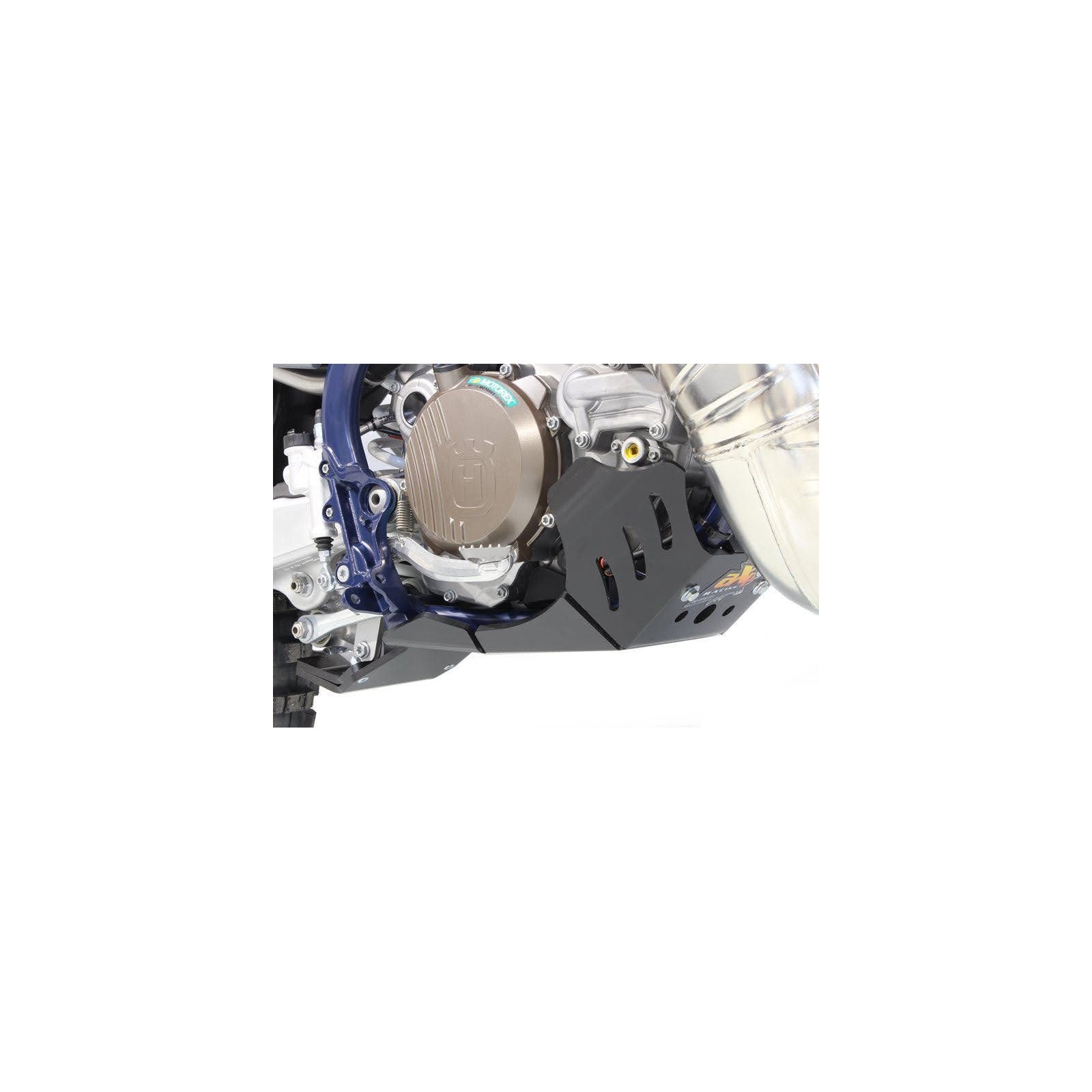 Costruita in polietilene ad alta densità (PEHD) di ben 8mm di spessore. La piastra ha ampie appendici laterali a protezione dei carter e della pompa acqua, una parte inferiore allungata per proteggere i leveraggi del monoammortizzatore e numerose asole di alleggerimento che permettono anche il drenaggio del fango. Montaggio e smontaggio molto rapido, con relative istruzioni e viteria inclusi. Questa piastra motore XTREM? di AXP soddisfa pienamente le esigenze dettate dall'enduro moderno, ove la parte inferiore della moto è spesso a contatto con gli ostacoli naturali e/o artificiali.