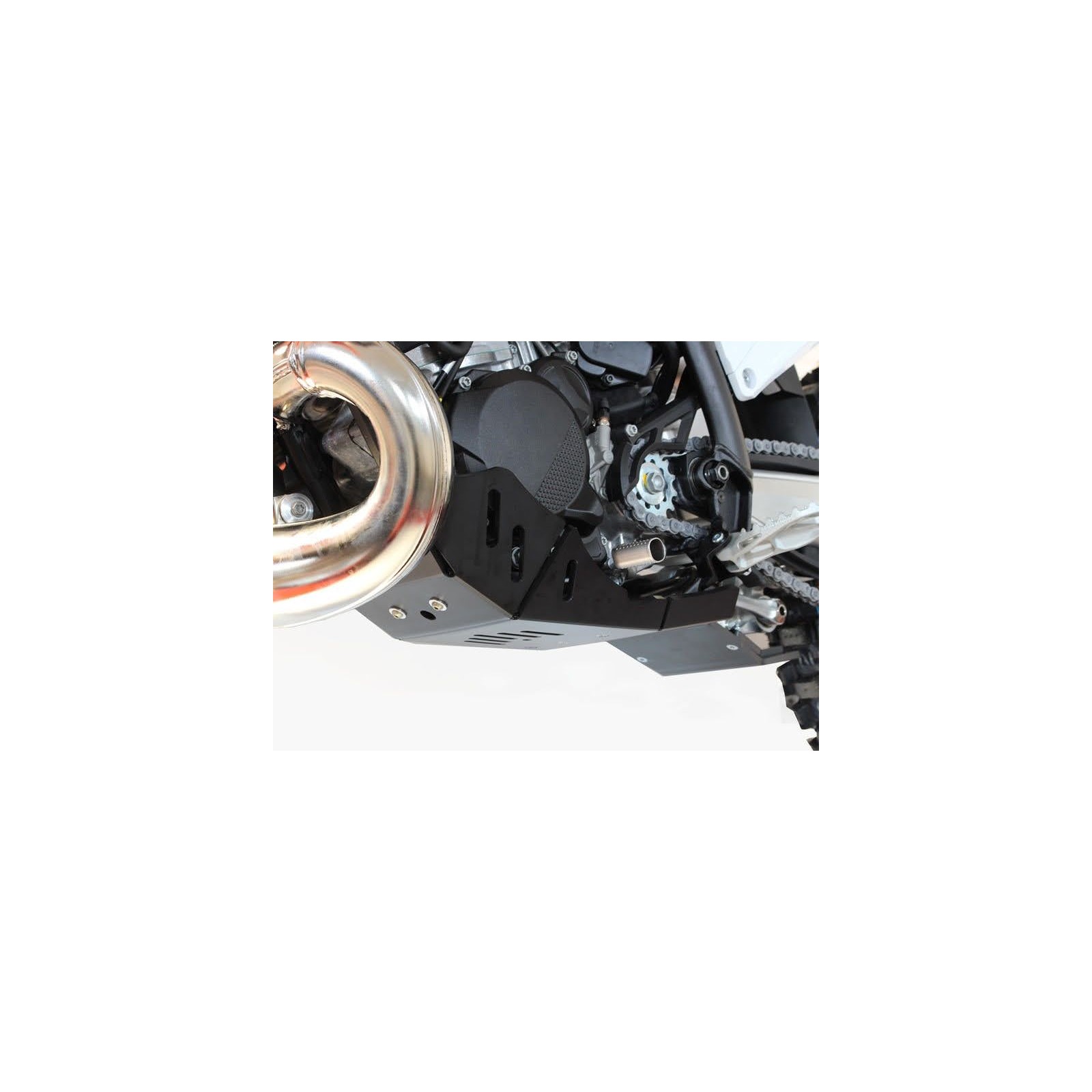 Costruita in polietilene ad alta densità (PEHD) di ben 8mm di spessore. La piastra ha ampie appendici laterali a protezione dei carter e della pompa acqua, una parte inferiore allungata per proteggere i leveraggi del monoammortizzatore e numerose asole di alleggerimento che permettono anche il drenaggio del fango. Montaggio e smontaggio molto rapido, con relative istruzioni e viteria inclusi. Questa piastra motore XTREM? di AXP soddisfa pienamente le esigenze dettate dall'enduro moderno, ove la parte inferiore della moto è spesso a contatto con gli ostacoli naturali e/o artificiali.