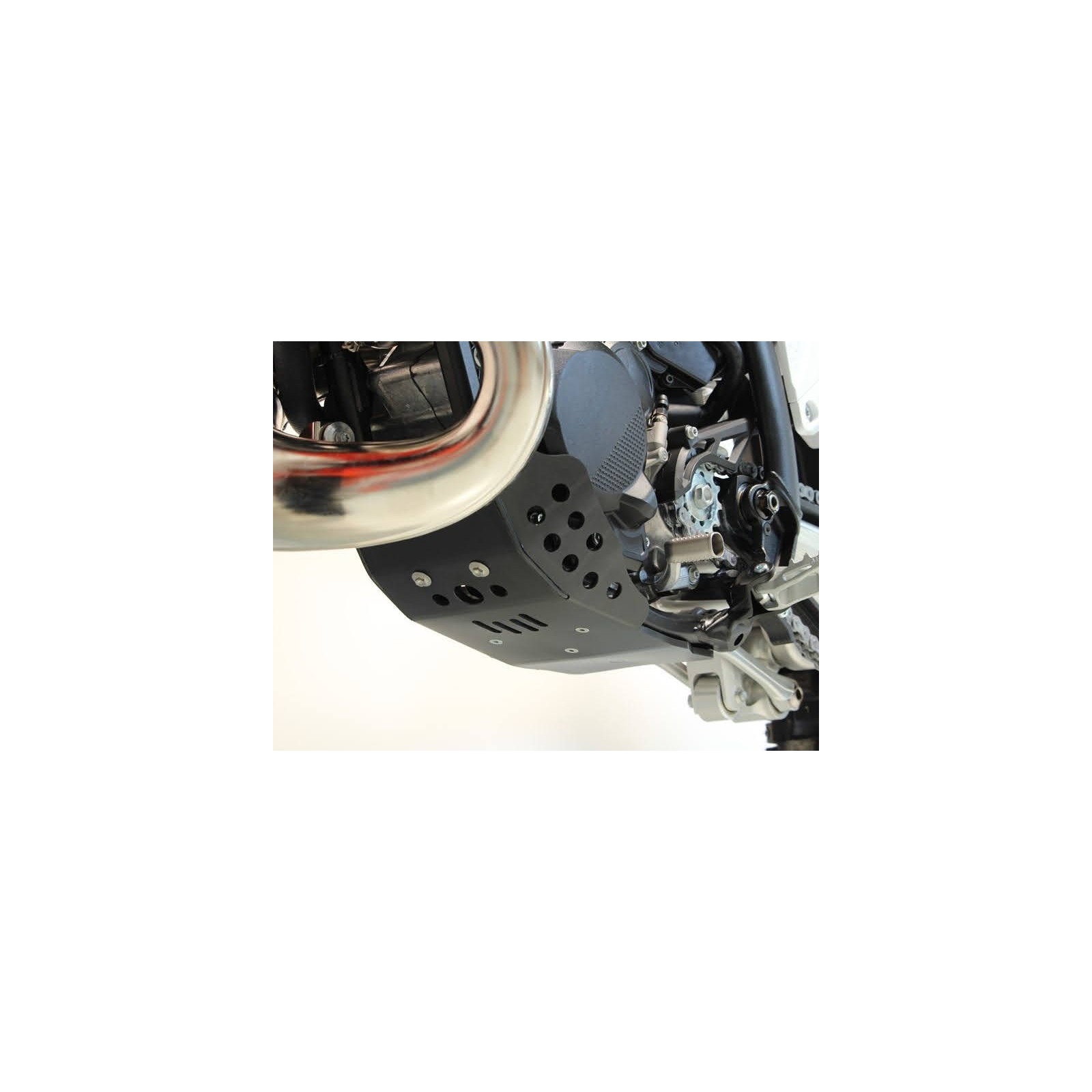 Costruita in polietilene ad alta densità (PEHD) di spessore 6mm. La piastra ha appendici laterali a protezione dei carter e della pompa acqua, numerose asole di alleggerimento che permettono anche il drenaggio del fango. Montaggio e smontaggio molto rapido, con relative istruzioni e viteria inclusi.
