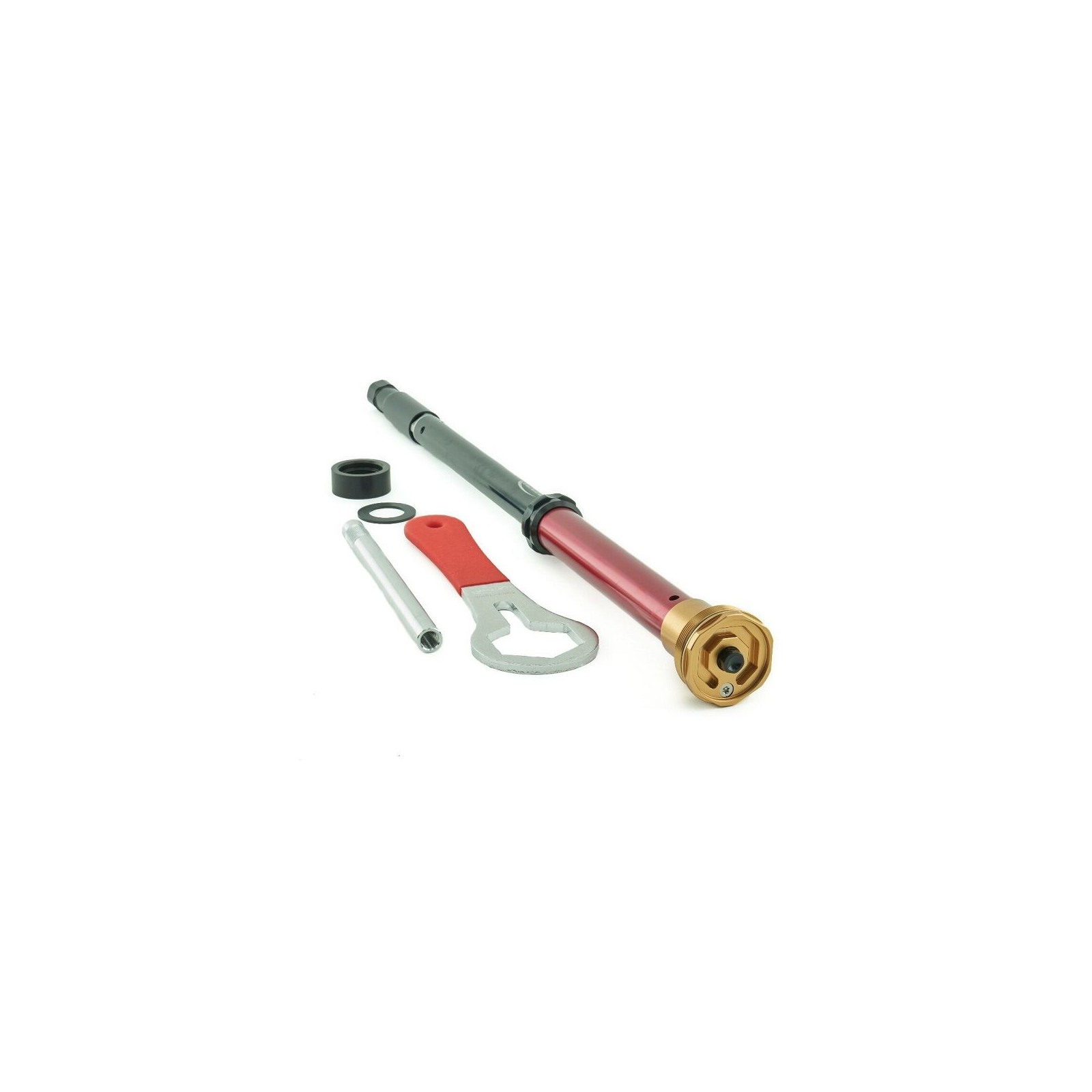 Il kit di K-TECH SUSUPENSION, denominato ORSS-2, elimina la camera della molla ad aria, di serie sulle forcelle WP 48AER e WP 43AER. Consente di rimuovere il sistema di smorzamento ad aria e sostituirlo con un sistema più convenzionale a molla, regolabile dall'esterno. Il kit è anche dotato di un sistema di fondo idraulico per proteggere il pilota da eventuali fine-corsa, anche i più duri. Esso è pronto per il montaggio e non necessita di alcuna lavorazione meccanica sulla forcella. ATTENZIONE: la molla non è fornita nel kit e deve essere acquistata separatamente, scegliendo quella più adatta alle proprie necessità.