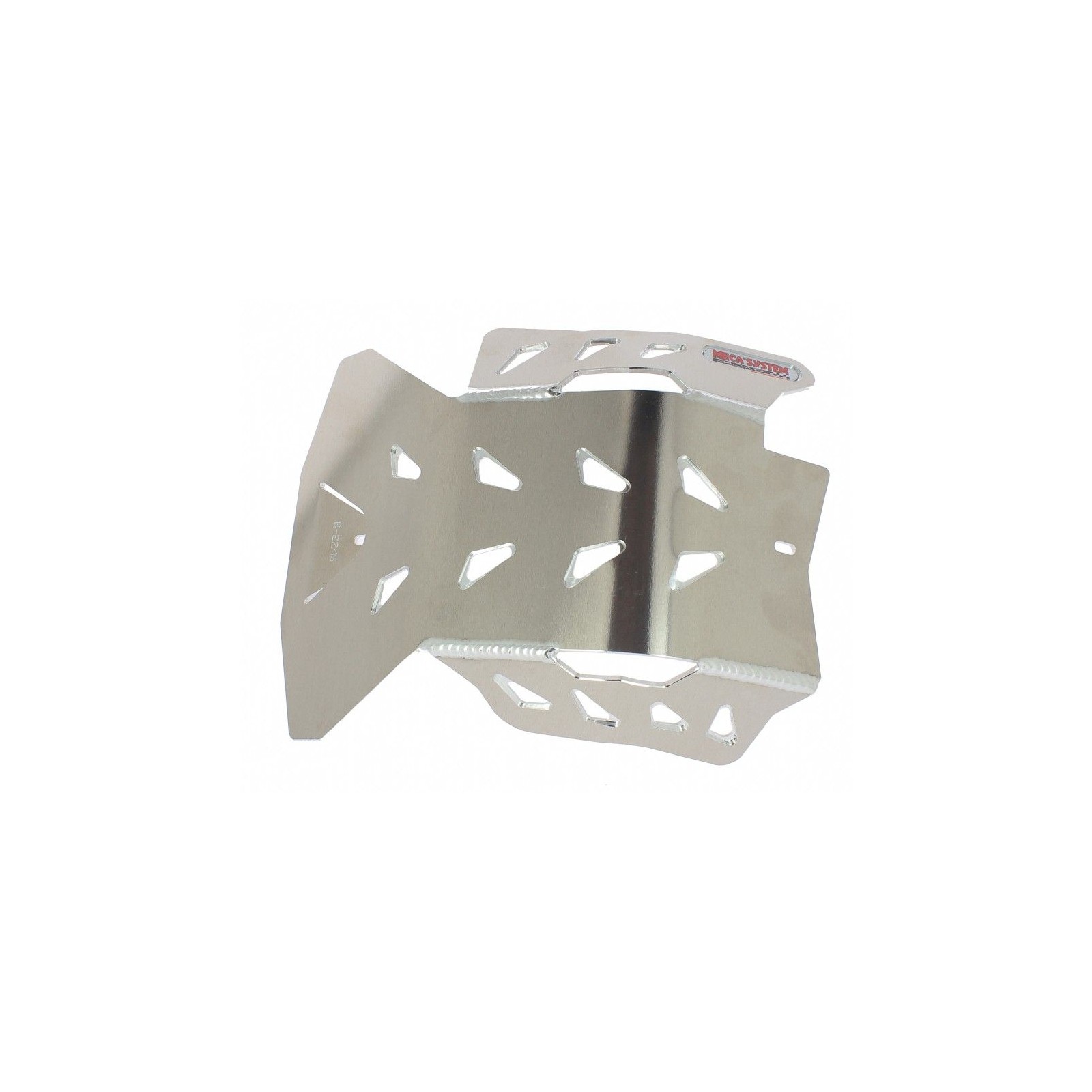 Costruito in alluminio AG5 con spessore 4 mm, con appendici laterali di dimensioni ridotte, con saldatura interna ed esterna. Finitura esterna lucidata a specchio, numerose asole per l'alleggerimento ed un miglior drenaggio del fango. Staffa di fissaggio in acciaio inox con dadi saldati, è fornito di strisce adesive in neoprene per evitare vibrazioni e risonanze. Le operazioni di montaggio e smontaggio sono molto rapide e necessitano di una sola chiave.