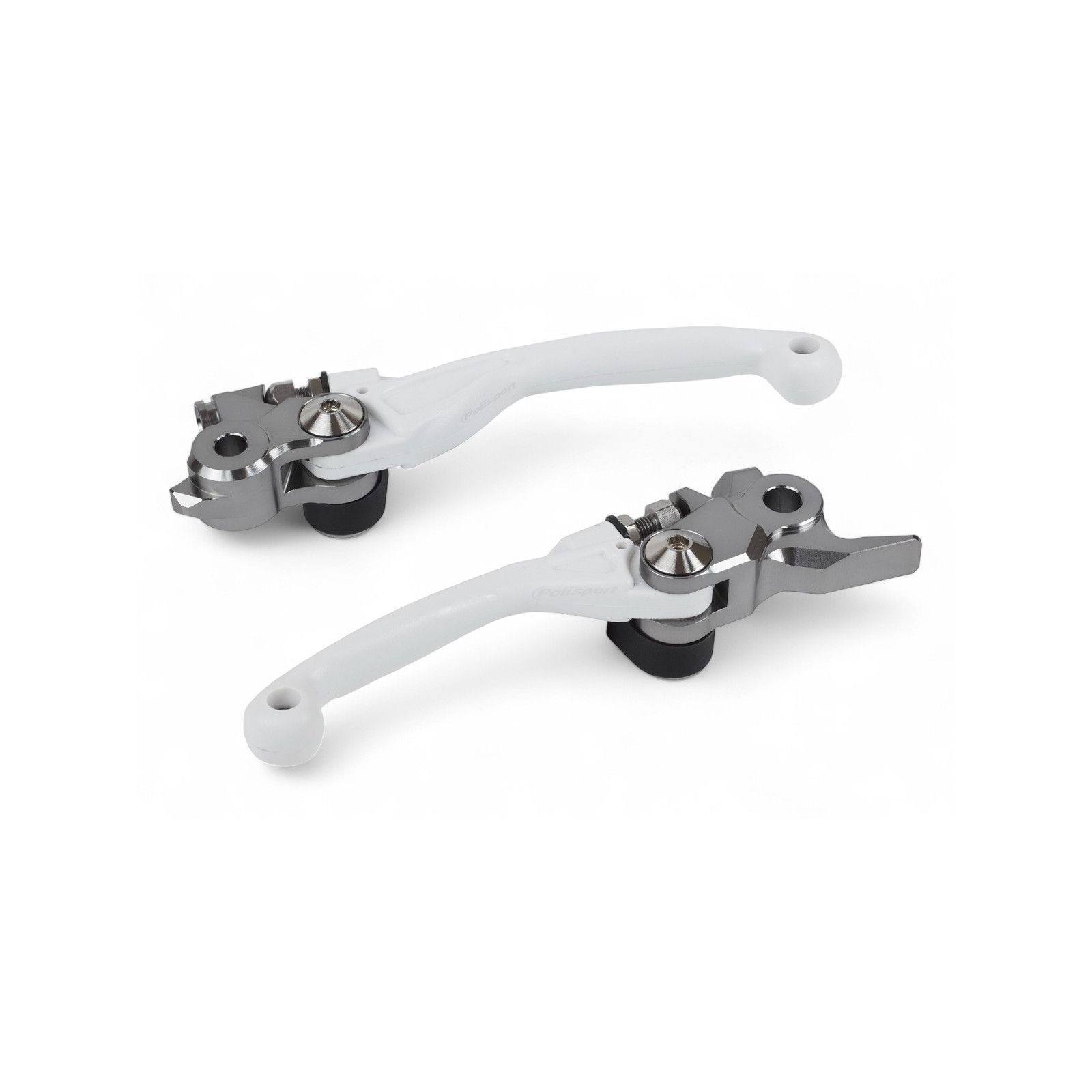Naturale evoluzione del concetto di leva anti-rottura?. La loro peculiarità deriva dai materiali da cui sono composte: la parte che si innesta nel braccialetto portaleva, con il classico snodo che consente il ribaltamento in avanti, è realizzata con lavorazioni CNC in alluminio; la parte della leva relativa all'impugnatura è ibrida, costruita in APT (Aero Parts Technology) con un'anima di acciaio inox. L'APT è un materiale termoplastico brevettato da Polisport che simula la rigidità dell'alluminio per un identico feeling con le dita, ma dal minor peso. Grazie all'anima in acciaio inox, la leva si può piegare senza rompersi ed essere raddrizzata senza che si spezzi. Queste leve soddisfano il concetto sinora incompleto di leve anti-rottura?. Prima, la responsabilità di non rompersi era lasciata solo alla capacità della leva di ripiegarsi in avanti. Ora, che anche l'impugnatura della leva è costruita con materiali indistruttibili, il concetto è finalmente completato.