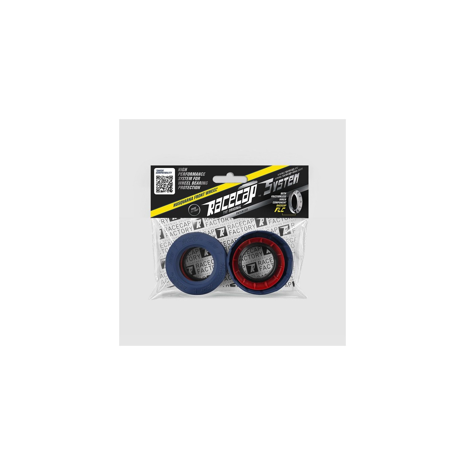 Prodotto in Italia con materiali innovati e a basso attrito. Sistema che gode di duplice brevetto, concepito per mantenere i cuscinetti delle ruote in un ambiente asciutto ed al contempo ridurre considerevolmente gli attriti. E? composto da: Cuffie di protezione Racecap FastDry, progettate con un profilo che sfrutta la differenza di conicità dei mozzi originali, creando una continuità armoniosa tra cuffia e mozzo, la cui aderenza riduce l'ingresso di sporco e acqua nei cuscinetti; Parapolvere Racecap FLC che, a differenza dei parapolvere tradizionali (che fanno tenuta sulla pista dei distanziali), fanno tenuta direttamente sui fianchi dei cuscinetti liberando? di fatto le ruote dagli attriti. I parapolvere FLC vanno a sostituire i parapolvere originali. Le peculiari sagome del sistema sfruttano l'effetto giroscopico per evacuare rapidamente gli eventuali liquidi e sporcizia riusciti a penetrare nella cuffia, evitando accumuli e ristagni, prolungando così la vita dei cuscinetti e dei distanziali. Venduto a coppia (per una ruota).