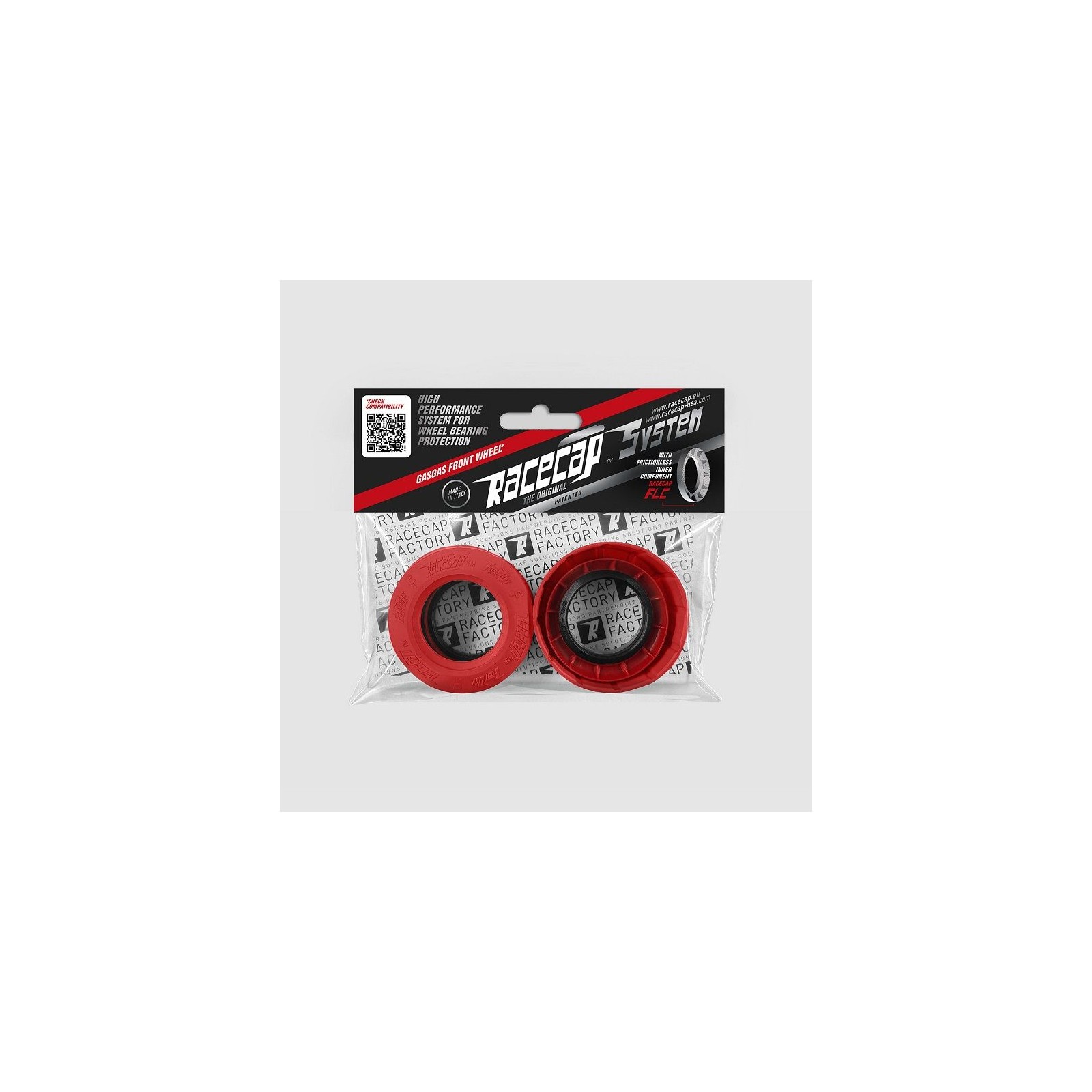 Prodotto in Italia con materiali innovati e a basso attrito. Sistema che gode di duplice brevetto, concepito per mantenere i cuscinetti delle ruote in un ambiente asciutto ed al contempo ridurre considerevolmente gli attriti. E? composto da: Cuffie di protezione Racecap FastDry, progettate con un profilo che sfrutta la differenza di conicità dei mozzi originali, creando una continuità armoniosa tra cuffia e mozzo, la cui aderenza riduce l'ingresso di sporco e acqua nei cuscinetti; Parapolvere Racecap FLC che, a differenza dei parapolvere tradizionali (che fanno tenuta sulla pista dei distanziali), fanno tenuta direttamente sui fianchi dei cuscinetti liberando? di fatto le ruote dagli attriti. I parapolvere FLC vanno a sostituire i parapolvere originali. Le peculiari sagome del sistema sfruttano l'effetto giroscopico per evacuare rapidamente gli eventuali liquidi e sporcizia riusciti a penetrare nella cuffia, evitando accumuli e ristagni, prolungando così la vita dei cuscinetti e dei distanziali. Venduto a coppia (per una ruota).