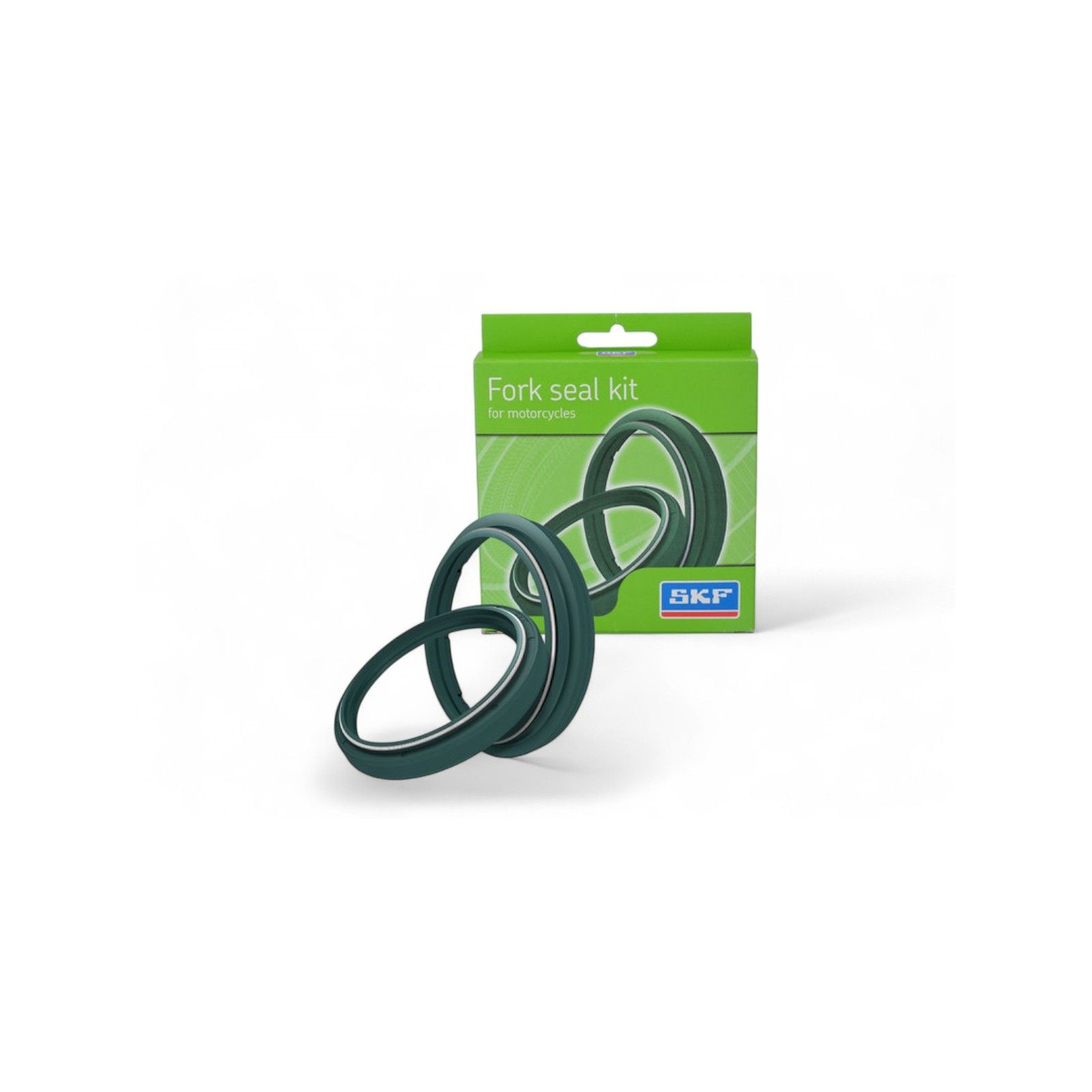 Kit composti da un paraolio e da un parapolvere SKF per forcelle, di colore verde.