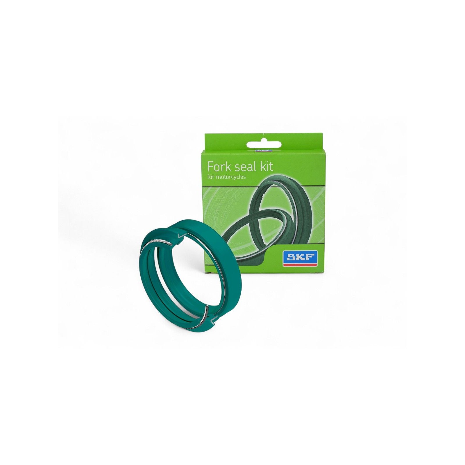 Kit composti da un paraolio e da un parapolvere SKF per forcelle, di colore verde. Versione a doppio labbro? per gli impieghi più gravosi.
