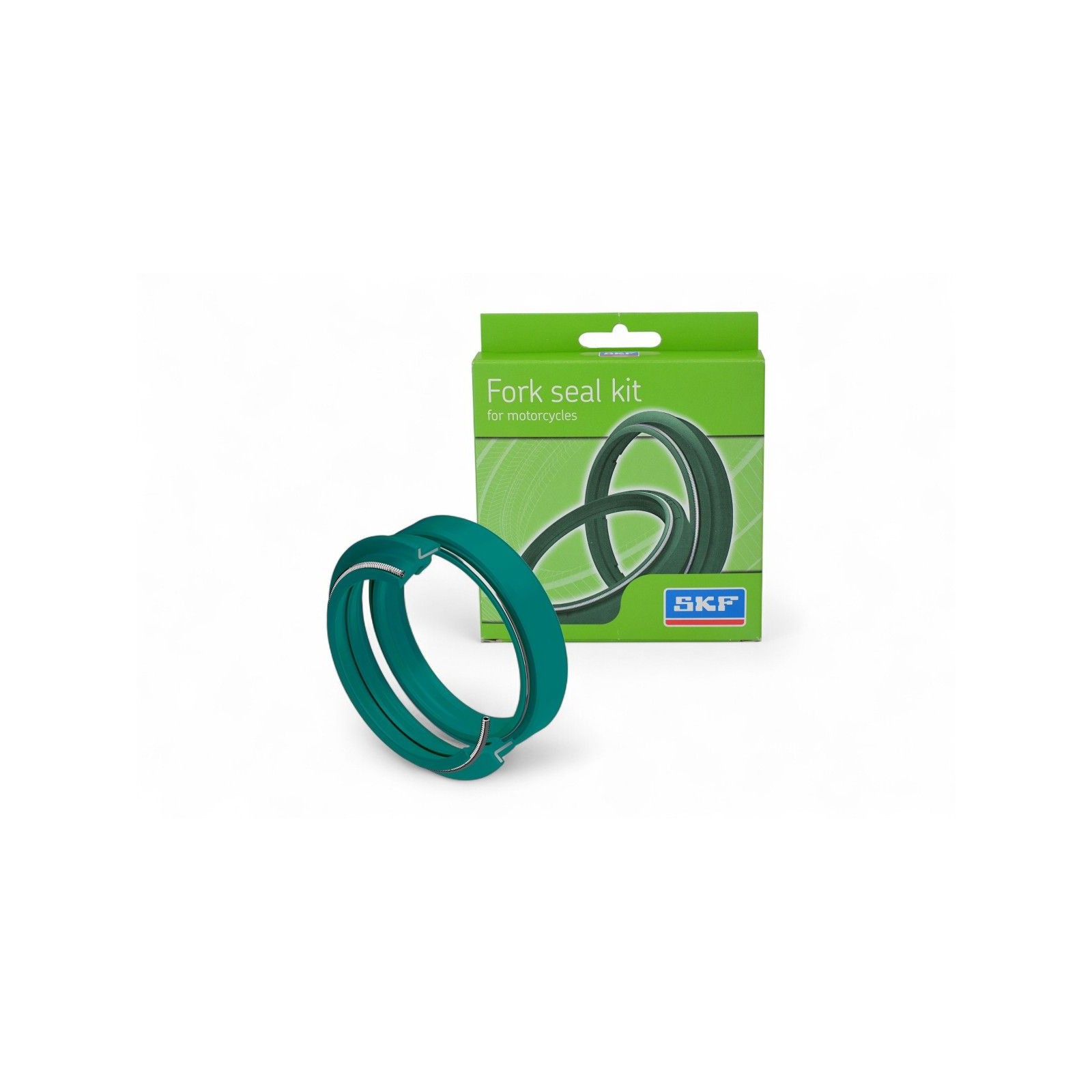 Kit composti da un paraolio e da un parapolvere SKF per forcelle, di colore verde. Versione a doppio labbro? per gli impieghi più gravosi.