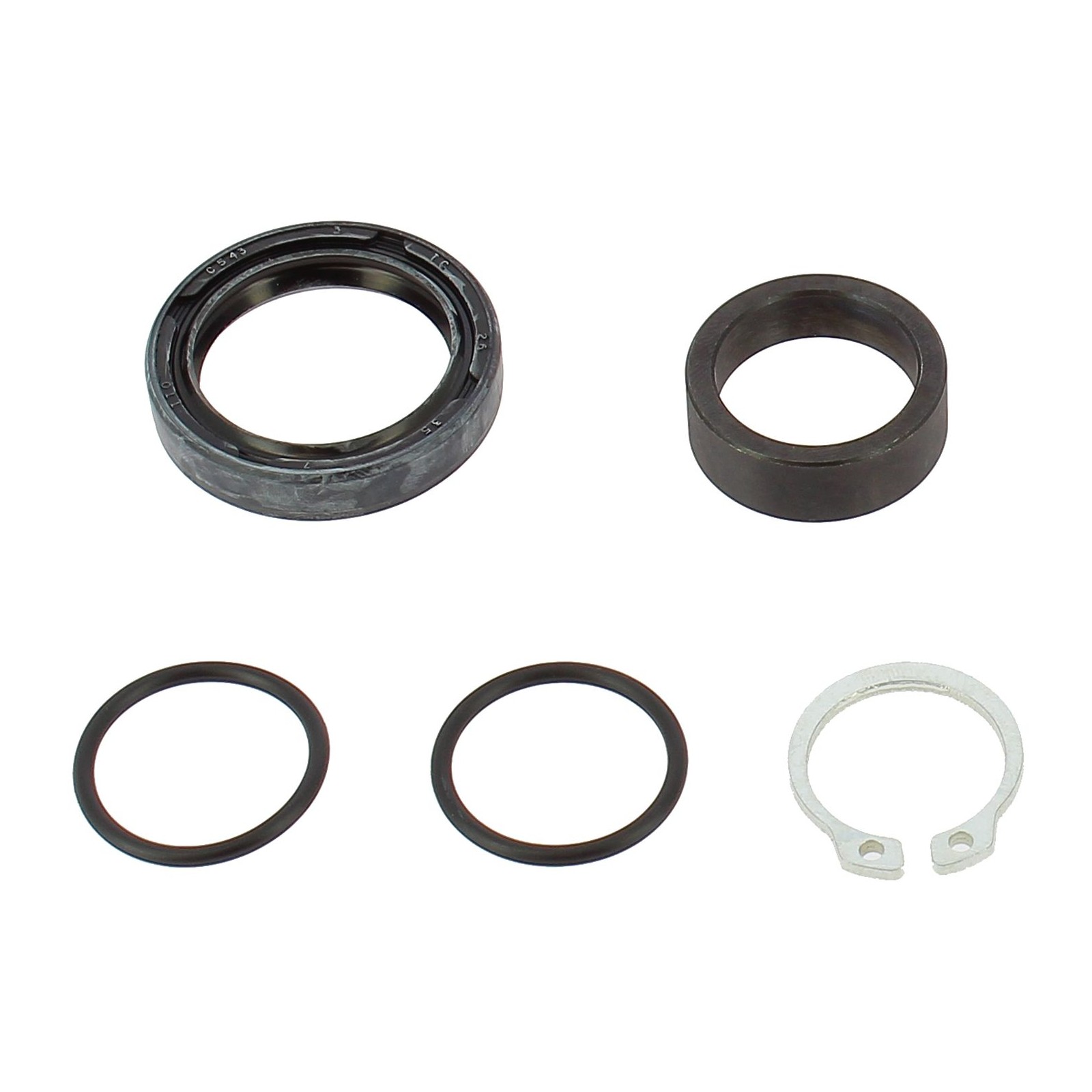 Questo kit contiene il paraolio, la bussola in acciaio, l'eventuale ranella di bloccaggio ed o-ring posti a tenuta dell'olio sull'albero del cambio, dietro il pignone. Permette di effettuare una più corretta e duratura revisione, rispetto alla sola sostituzione del paraolio, ad un costo contenuto.
